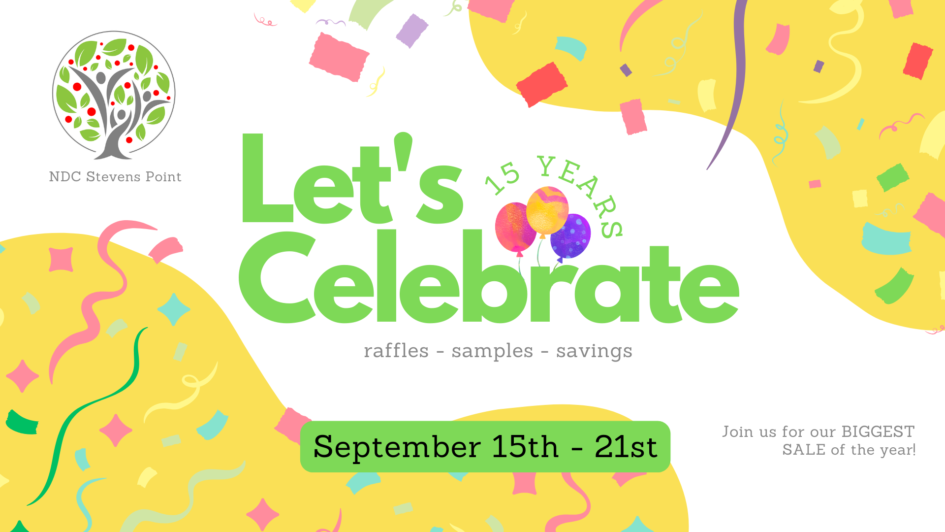 What a September this will be! We are throwing our 15th-anniversary celebration at NDC Stevens Point this September 15th – 21st, and you won’t want to miss this!